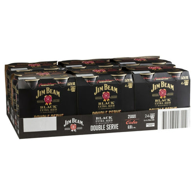 Jim Beam Double Black is a premium American bourbon whiskey known for its richer and darker character derived from extra aging in charred oak barrels. It has a higher intensity than the classic Jim Beam, featuring deep aromas of oak, caramel, and vanilla, complemented by a bold and smooth palate with hints of smoke and spice. The Double Black variant is often enjoyed as a ready-to-drink pre-mixed can with cola, typically at 6.9% ABV, offering a full-bodied and flavourful drinking experience with balanced sweetness and a robust bourbon presence.